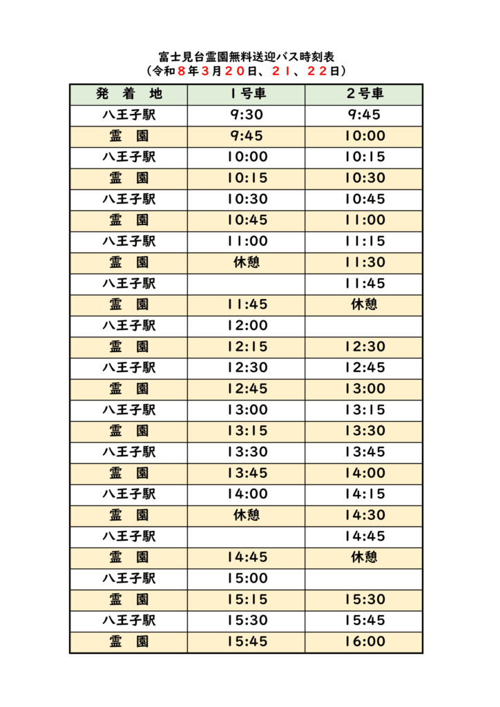 富士見台霊園無料送迎バスにつきまして